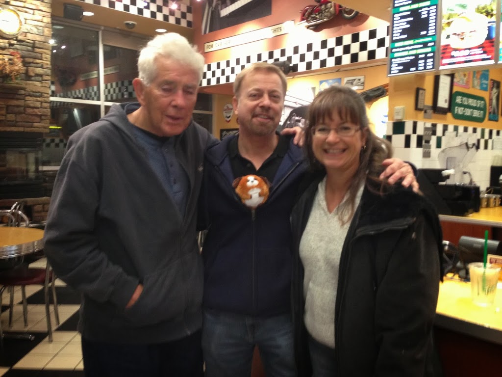 I’ll keep this one short as I’m a week behind on it already.  Preparation and travel details continued pretty much right up to the minute my plane left for Bangkok so it was a relief to actually get airport and put it aside finally. My amazing family drove me down to Seatac (about 7 hours drive each way) and was a wonderful way to chat and do the send-off. I am blessed to have this incredible, tight knit loving family for those of you who don’t know them. On the way down, my sister Jan thought to buy a little stuffed Gopher mascot for my journey, so I’ll be stuffing him into random pictures here and there. He’s probably not intended to be a Gopher, but close enough and if she says he’s a Gopher, he’s a Gopher Goddammit. Still trying to decide on a name though. Here he is stuffed into my jacket as I stand with my Dad and Jan in the White Spot drive-in (an ancient and revered BC restaurant chain institution in case you didn’t know) in Kelowna on the way down. Totally bad for you road food but oh so tasty. Triple O sauce must be the devil’s own invention I think.