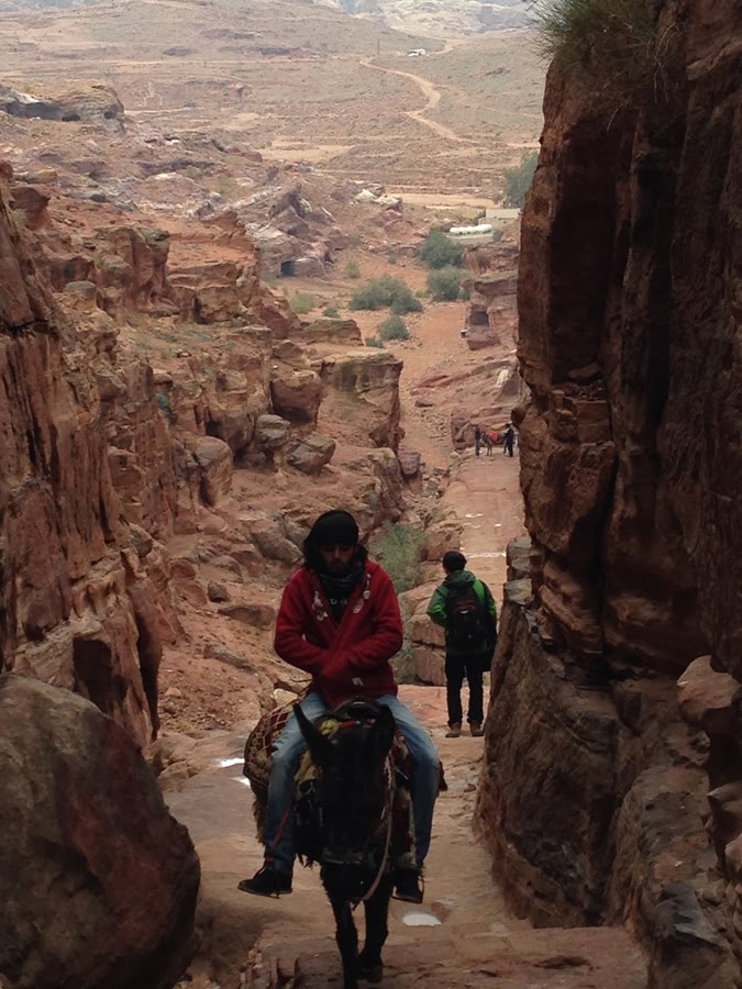 If you want to visit the Monastery and higher view points at Petra, be prepared for a long steep walk or an interesting donkey ride on these narrow and winding trails carved into the rocks and canyons toward the far side of the park. I chose to walk, since I virtually always do and was rewarded with so many incredible sights and experiences you would miss if you just zoomed by on 4 legged transport I think. It’s that whole slowing down and stopping to smell the flowers sort of thing. Not that it wouldn’t be fun and a little exciting near some of the steep winding precipices along the way. It would indeed!! I chose to take a camel ride later in the day when I could cover ground I’d already been through on foot.