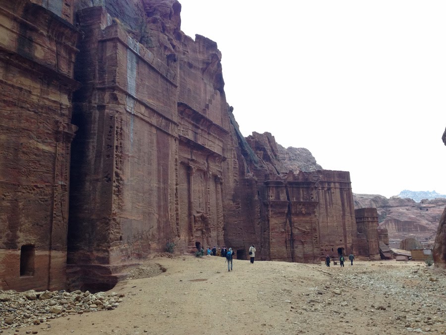 If you’ve ever seen Indiana Jones and the Last Crusade, you have seen one of the better known monuments at the ancient archeological site of Petra. The giant monument seen near the end of the movie is carved right out of a huge cliff face and you first approach it down a long, narrow and winding canyon. There are many many structures carved into the rock here, but this is the first one of real signficance you come across walking into the park and it’s called the Treasury. As you come toward the opening where it lies, the canyon narrows even more, but you can catch part of it in the background hinting what is to come. When you get there it all just opens up like a stage production. It’s magnificent. Its ancient and you can see/feel that immediately.