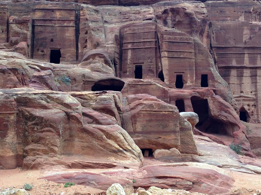 Continuing down the path past the Treasury, the canyon opens up again and you start to see more and more variety of structures lining the cliff faces all around. Some are low and many are up on higher tiered cliff bands. Some look pretty inaccessible at first glance and it’s hard to believe that people with basic tools and technologies could work these miraculous structures into the rock like they did.