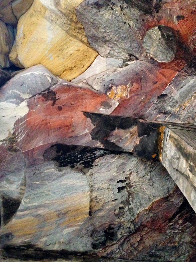 One of the most amazing things I came across were these gorgeous swirling patterns of color and shape made entirely by naturally colored rock bands pushed and moved around by time and geology. Though they look 3D, the colors are all flat and generally are fairly large. The photos here each probably cover an area from about 8 to maybe 12 feet. I could have stared at these all day long. So many endless variations and so much beauty. You can’t paint this stuff.