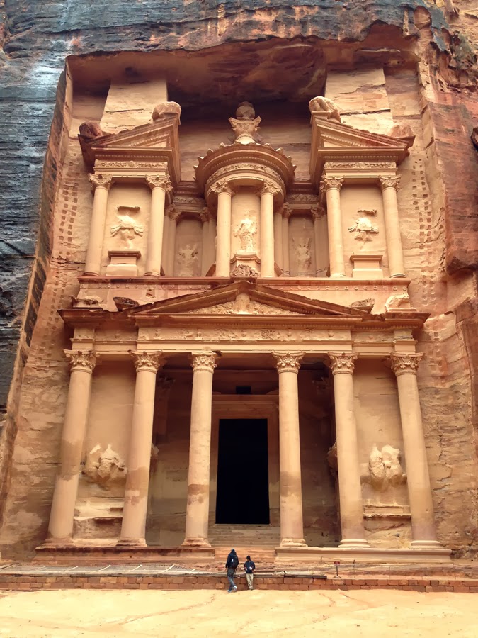 | The facade of the Treasury structure. Note the people in front for scale. |