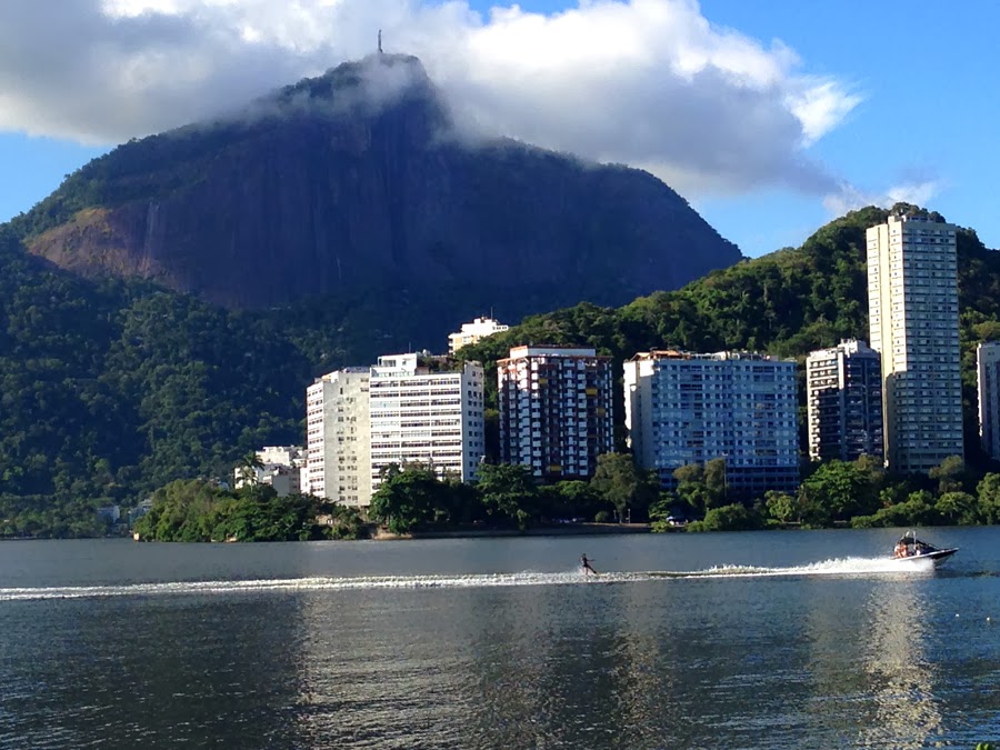 | Looking down from the Corcovado route at the Lagoa Rodrigo de Freitas |