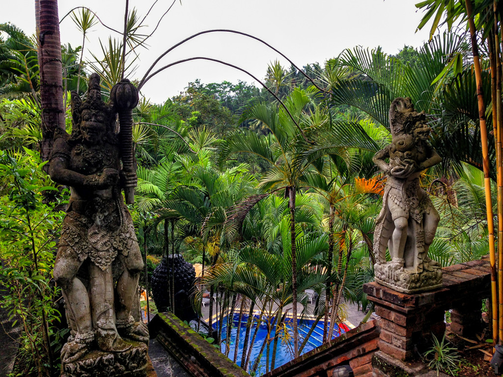 The hotel is situated on a terraced slope just outside the main part of town, so it feels like you’re out in the jungle somewhere remote, even though well trafficked roads are close at hand. The way things are laid-out here provides an extra sense of privacy and adds to the feeling of intimacy. An almost labyrinthine collection of paths winds up, down and through beautiful Balinese sculptures, exotic plants and gorgeous flowers. A word of caution here is that navigating the grounds does require walking up and down reasonably steep paths, so this venue may not be everyone’s cup of tea.
