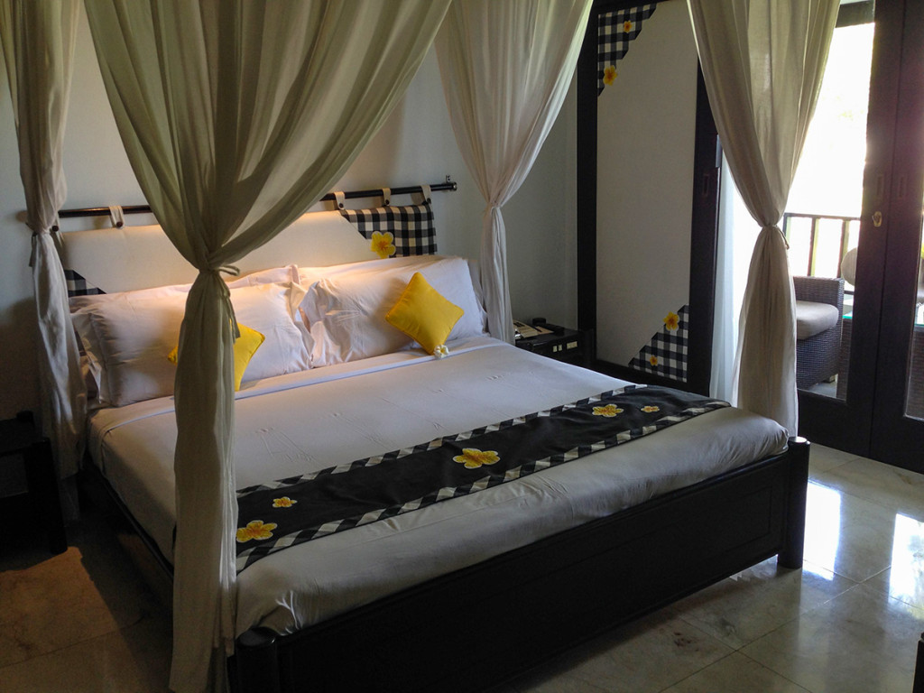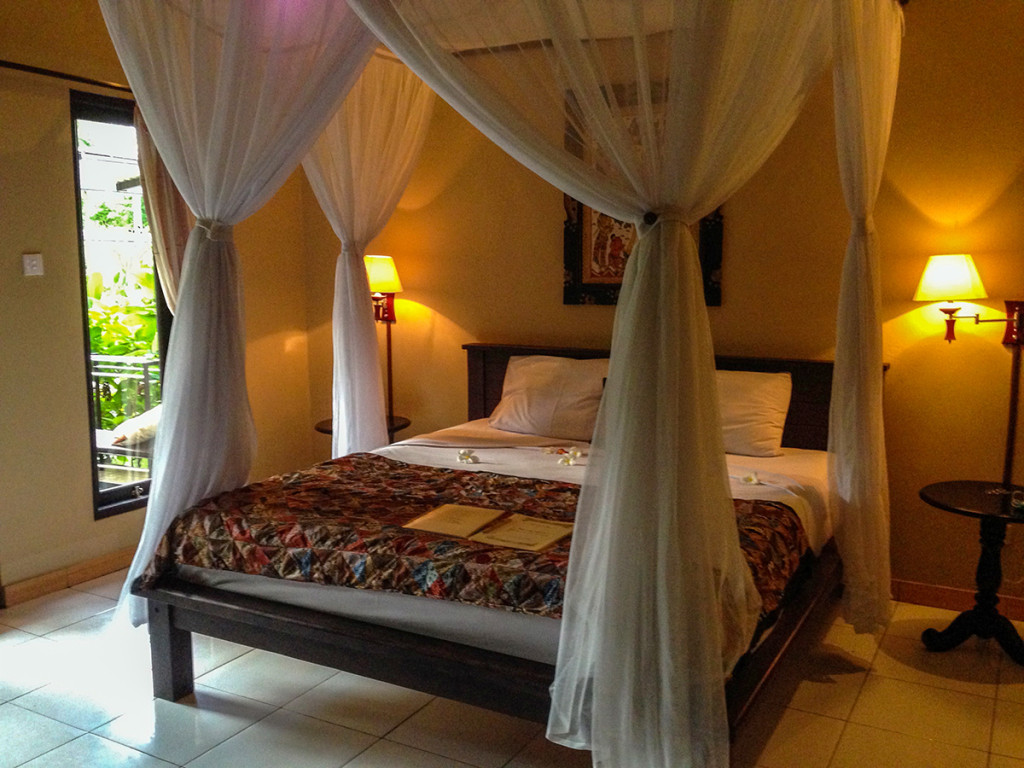 Don’t let the term “home stay” dissuade you from thinking this place isn’t romantic, because it most certainly is. It also doesn’t mean your room will be inside someone’s house. It won’t. This is not a large hotel with dozens or hundreds of rooms, but it is run by Mr. Taruna and his incredible extended family. In all my travels around the globe, these are some of the warmest and friendliest people I’ve ever met. They truly make you feel like family, but are in no way nosy or intrusive. In case it’s not clear, I really love this family. Rooms are large and decorated with beautiful local art. In fact, I bought several pieces from the little art gallery in their office and shipped them home.