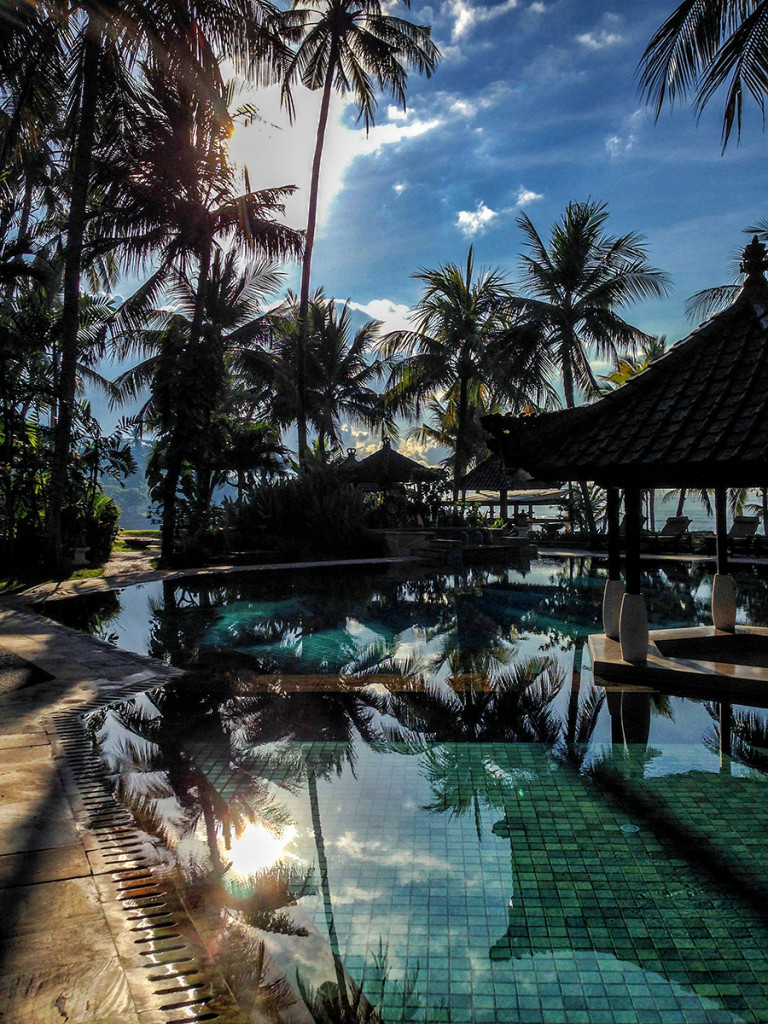 If you’re like most people staying here for a few days or more, you’ll soon find this self-contained oasis a little isolating and want to go exploring. In most cases, this will require hiring a car to get you most anywhere else. The hotel can arrange these, although you can easily find other drivers in the town of Candidasa proper if you want to shop around. Rates are pretty darn reasonable, even if you want to drive back into Denpasar or Kuta. Just ensure you budget plenty of time, because it’s a pretty long drive each way through traffic. If you’re looking for a fun beach experience not too far away, you might try White Sand Beach. They have Warungs (like little family-run cafes) right at the beach and will bring food and beverages straight to your towel or lounge chair (which you can rent for a modest fee). Other hawkers will also come to you selling all manner of trinkets. There is great scuba diving in the area and I’d recommend Bali Bubbles in Candidasa for dive trips to Padang Bai for example.