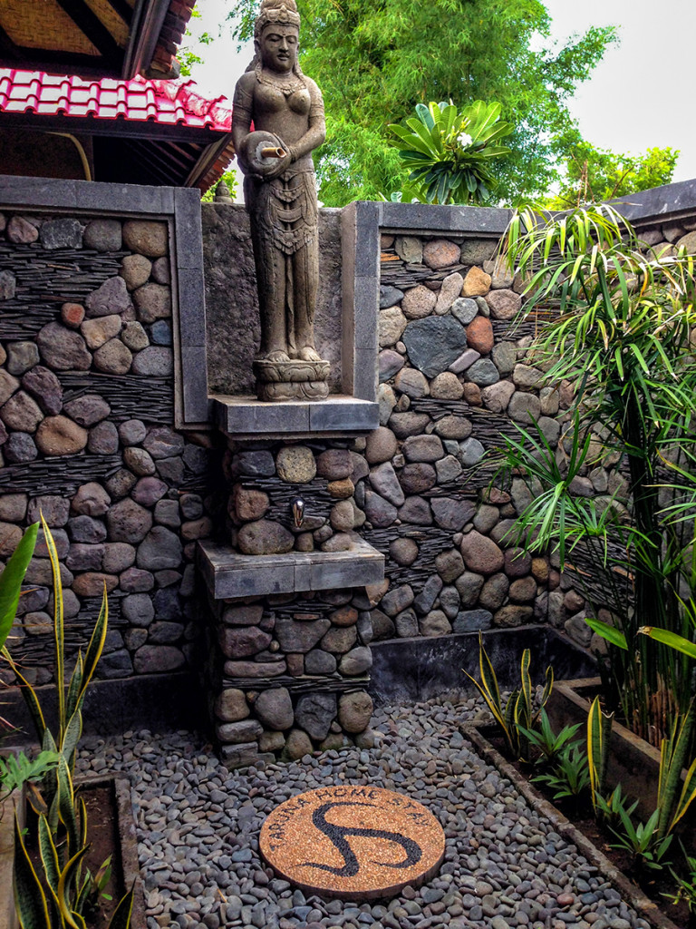 The rooms are plenty spacious with high ceilings and the canopy beds are just beautiful. Whoever makes up the room each day will probably leave you wonderful little messages and designs in flower petals on the bed. I found that quite touching and romantic too. Maybe the best part is the showers and bathrooms located outside the room proper and open aired. Before you freak out, know that it’s completely private and showering under the open sky with water pouring forth from a wonderful Balinese sculpture is just one of the best experiences you can have. Seriously.