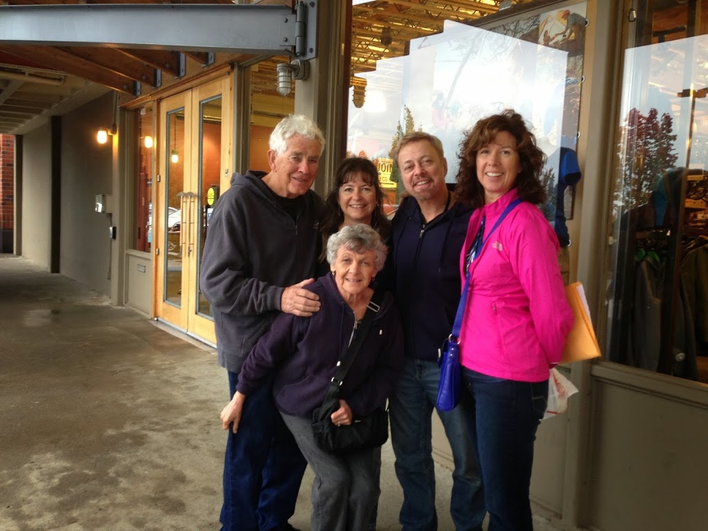 Overnight in Chilliwack and then on to Bellingham before Seatac. We met our lifelong super amazing friend (more like family member actually) Candice at the REI there and had a great (wait for it) Thai lunch. Here we all are in front of the B-Ham REI on a very wet Saturday afternoon.
