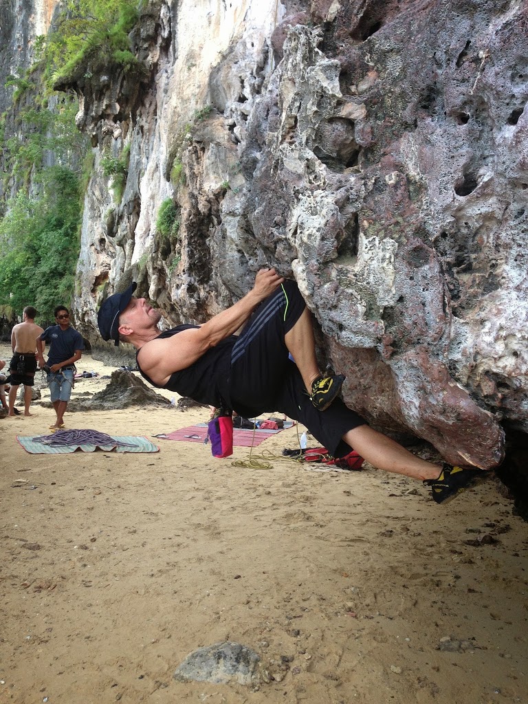 Rock climbing at Tonsai in Thailand. Fun routes right off the beach that sometimes have very steep starts to them.