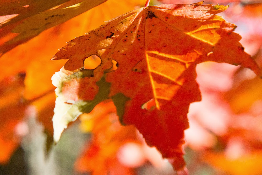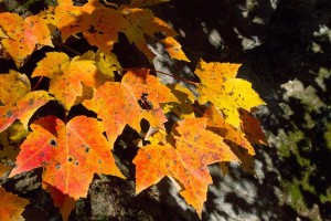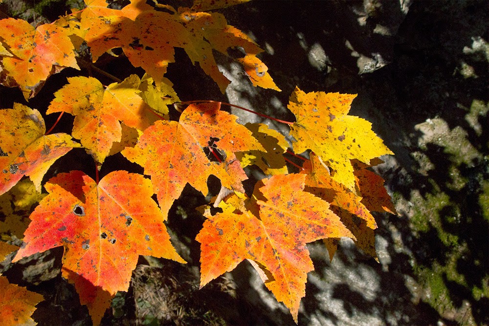 I drove and hiked quickly, but with focus so as not to miss any of it. When I took my gaze away from the water and up into the forest I saw things in a whole new way. One of the things that really fascinated me was the juxtaposition and contrast between the vivid colors of the changing leaves and the obvious signs of decay already eating into and corrupting their beauty. The first blush of entropy and death necessary for rebirth and growth. The way of all things.