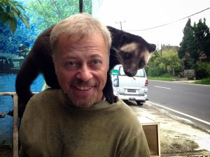 The Civet Cat was actually really fun and playful. Pretty soft fur and ticklish. He had plenty of energy and seemed very comfortable crawling around on you. This is source of the famed and very expensive Coffee Luwak in Bali.