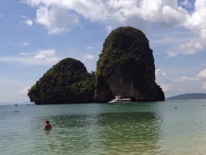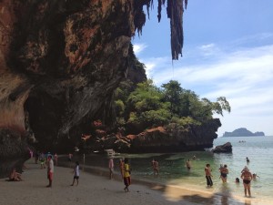 This is Pranang Cave which not only has some nice climbs off to the side, but a spectacular beach that seems to be pretty popular with more affluent tourists just looking to sunbathe and play in the very warm water of the Andaman Sea.