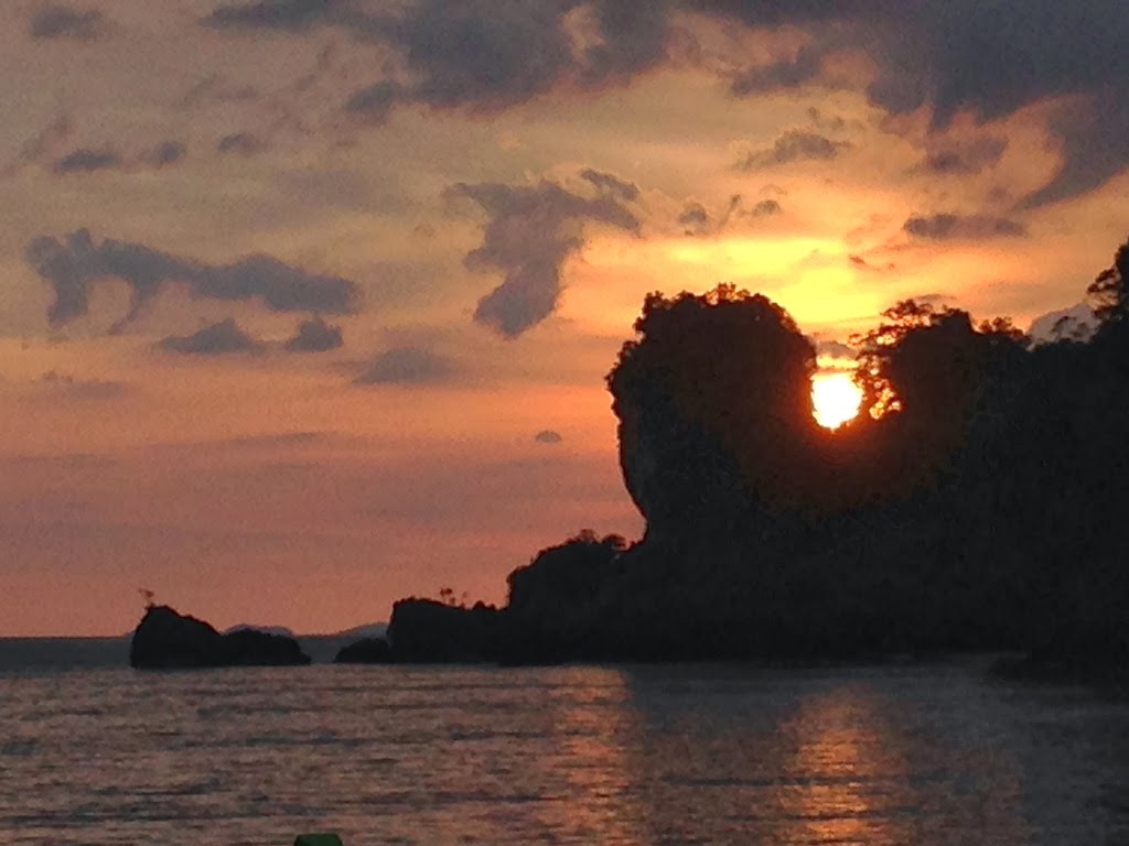 The image above is another sunset pic from one of my favorite spots to sit and drink coffee or a fesh fruit smoothie at the end of the day. It’s where the long-tail boats mostly come in and where the small coterie of cafes and food carts set up for dinner. Most people staying in Tonsai proper (as opposed to Railay) are climbers so we all tend to congregate here in the early morning and evening to talk and find climbing partners. People come and go so you are always meeting new people and sharing conversations as well as climbing.