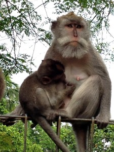 The primates in the Monkey Forest in Ubud were waaaaaayyyyy more congenial I think due to regular feeding and care by professionals and paid staff. I really liked this place and have walked through it many times in the week or so I’ve been in Ubud. Always something fun or cute to see and lots of amused tourists and their kids – fascinated with the monkeys as I think we all were or still are.