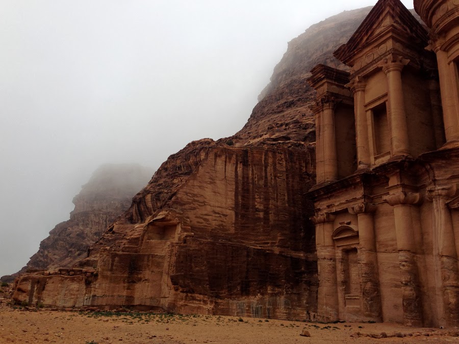 They also told me I should go on the Petra at Night tour/walk that same evening as it wouldn’t be repeated during my time here. It cost 12 Jordanian Dinars (about $16+ USD) and turned out to be wonderful. Once past the park entrance, there are small tea light candles lining the entire mile or more of path down through the canyon and opening at the Treasury (see above). It’s just sublime. The weather was very cold that night and ended up sleeting/raining once I got down there, but didn’t take away from the experience at all. They played and sang for us all once everyone had gathered and were sitting on the steps or portico of the Treasury structure.