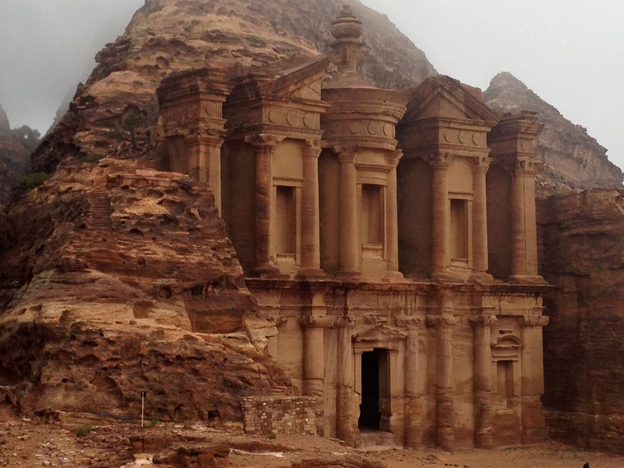 If you’ve ever seen Indiana Jones and the Last Crusade, you have seen one of the better known monuments at the ancient archeological site of Petra. The giant monument seen near the end of the movie is carved right out of a huge cliff face and you first approach it down a long, narrow and winding canyon. There are many many structures carved into the rock here, but this is the first one of real signficance you come across walking into the park and it’s called the Treasury. As you come toward the opening where it lies, the canyon narrows even more, but you can catch part of it in the background hinting what is to come. When you get there it all just opens up like a stage production. It’s magnificent. Its ancient and you can see/feel that immediately.