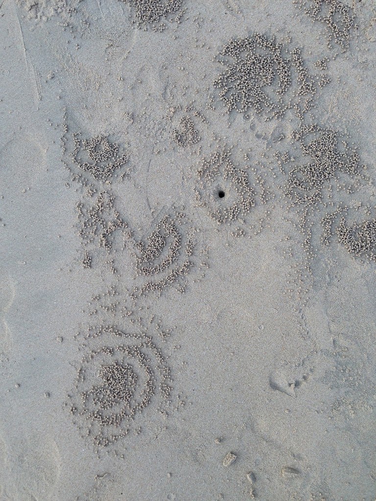 | Tiny little crabs dig their homes in the sand making wonderful patterns that stretch almost endlessly |
