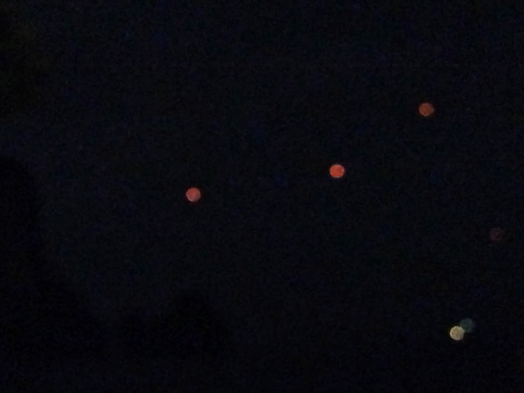 | Hard to see but beautiful lit lanterns floating into the night sky for Buddhist Loi Krathong Festival. Like souls journeying to the next world. Totally ethereal. |