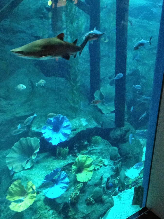 This isn’t Podunk Pete’s Wonder Aquarium with a handful of Goldfish and a pissed off Neon Tetra. They have everything in there and it’s just bristling. One half of me, the scuba diving, eco-friendly, hate seeing things-in-captivity half, is feeling a little disgusted by it all. The other eight year old half that grew up watching Flipper, Jacques Cousteau and Voyage to See What’s On the Bottom is just drooling over all those cool aquatic creatures spinning laps in the world’s largest fish tank. Holy Seafood Lovin’ Mother Load Batman!!