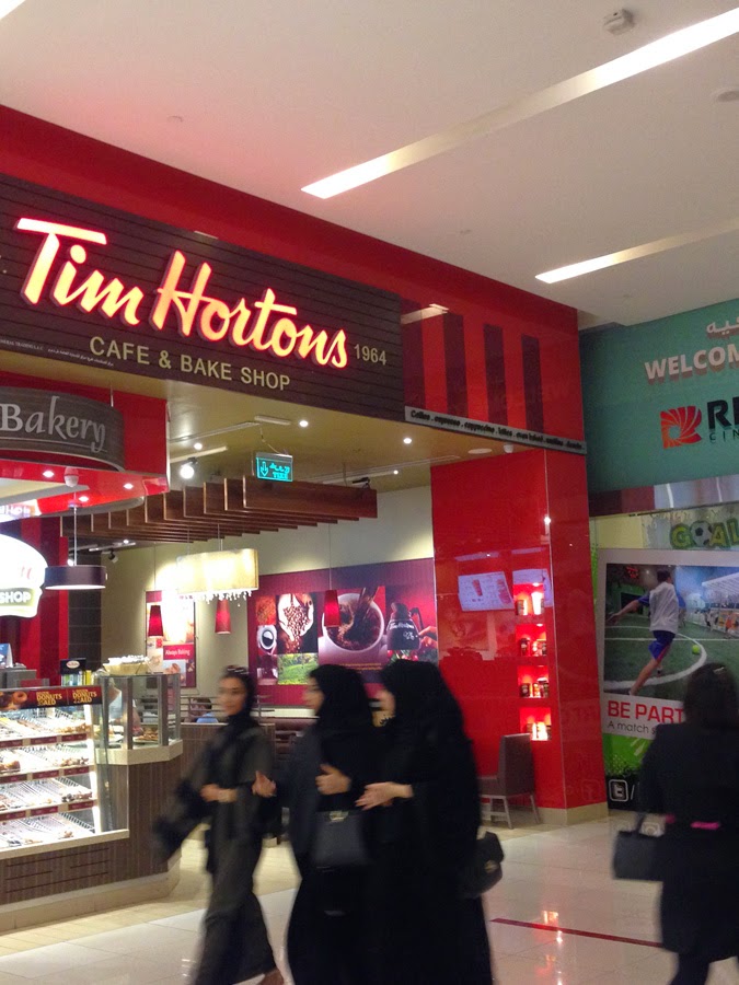 One of the other things I saw at the Dubai Mall I’m sure was planted by my family back in Canada – a Tim Horton’s Donuts of all things. TimBits is practically a national institution there, even though I think their coffee tastes like wimpy dishwater (donuts are okay though).