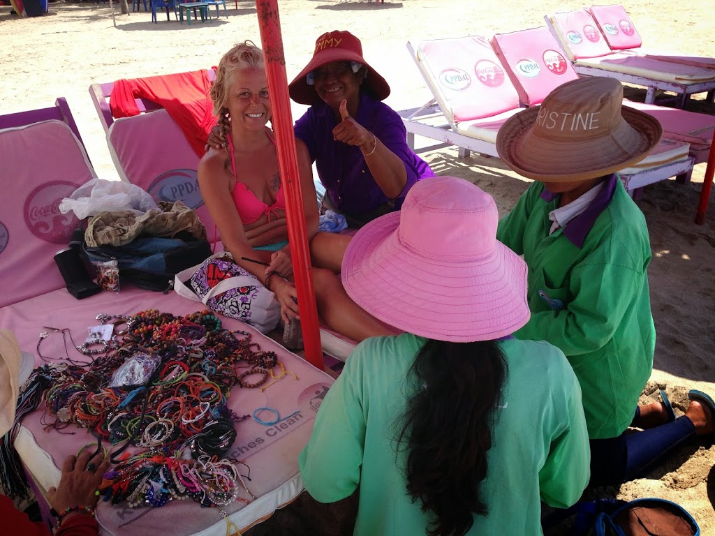 But really – what you NEED – crave maybe would be the more accurate term, is a trip to the mall for a good old fashioned shopping experience. It eats up all your thoughts, making it hard to concentrate on the lush tropical setting you’ve flown 15 trillion miles to visit. Well, fear not gentle traveler for your salvation is at hand. If you can’t get to the mall, the mall will get to you!! That’s right, all you need to do is sit still for more than 1.2 seconds and someone will be there to sell you whatever you may or may not need. Cold drink? Check. Fruit smoothie with or without sight destroying alcohol? Got it. Bangles, beads, trinkets, lockets, chains, bracelets, henna tattoos? Gotcha covered Mate. New towels, scarves, sandals, swimsuit, scarves or hats? Check-a-roonie Sport. Want your nails painted by a true artist for less money than a bottle of water? No problem. Not now or not sure? No worries Mate – they’ll be back!